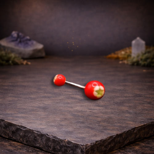 De Cherry Bloom Navel Bar knalt eruit met een warme, levendige rode tint en een speels bloemdetail. Het voelt vrolijk, energiek en net een tikkeltje eigenwijs — alsof je outfit ineens een stukje meer karakter krijgt.