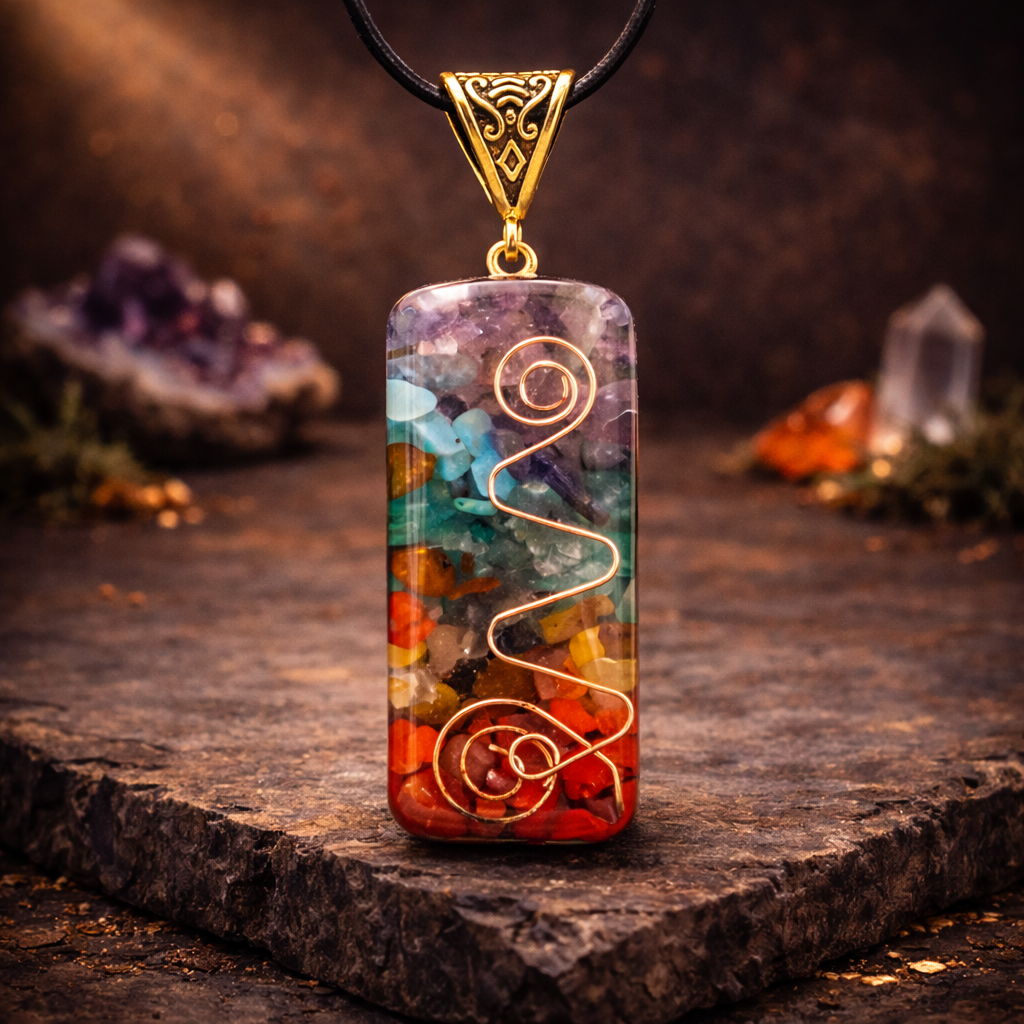 Krachtige energy hanger met edelsteenmix en spiraal.