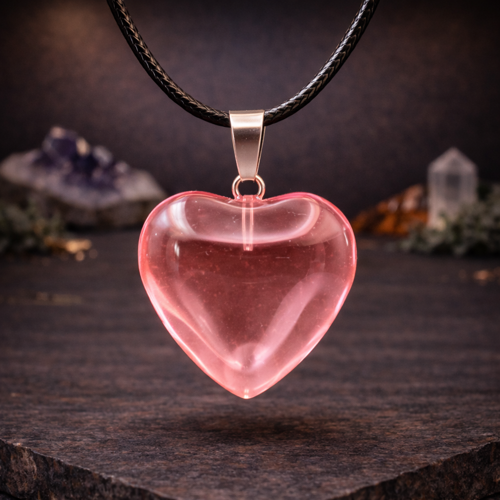 Zachtroze hartje in crystal look. Een liefdevolle talisman voor zachtheid, harmonie en warme energie.