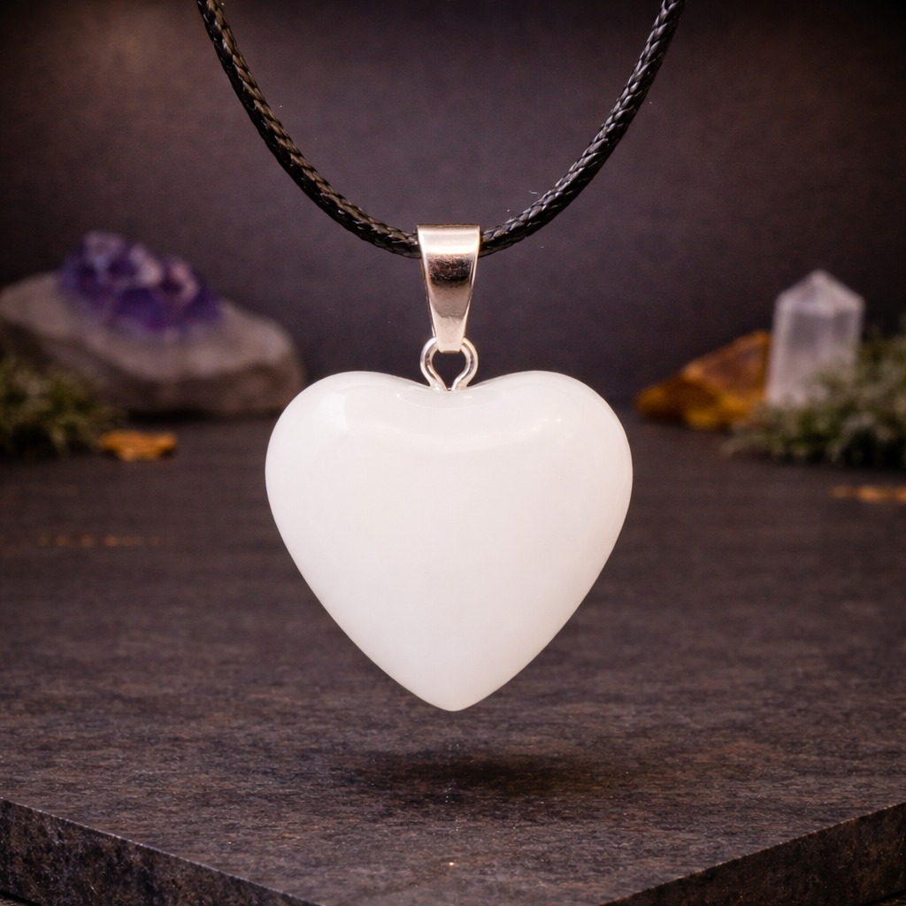 Stijlvol wit hartje met een zachte glans. Een pure talisman voor rust, helderheid en liefdevolle energie.