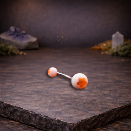 De Peach Bloom Navel Bar combineert zachte perziktinten met een speels bloemaccent. De lichte, bijna dromerige kleur geeft een rustige uitstraling, terwijl het bloemetje nét dat beetje extra toevoegt.